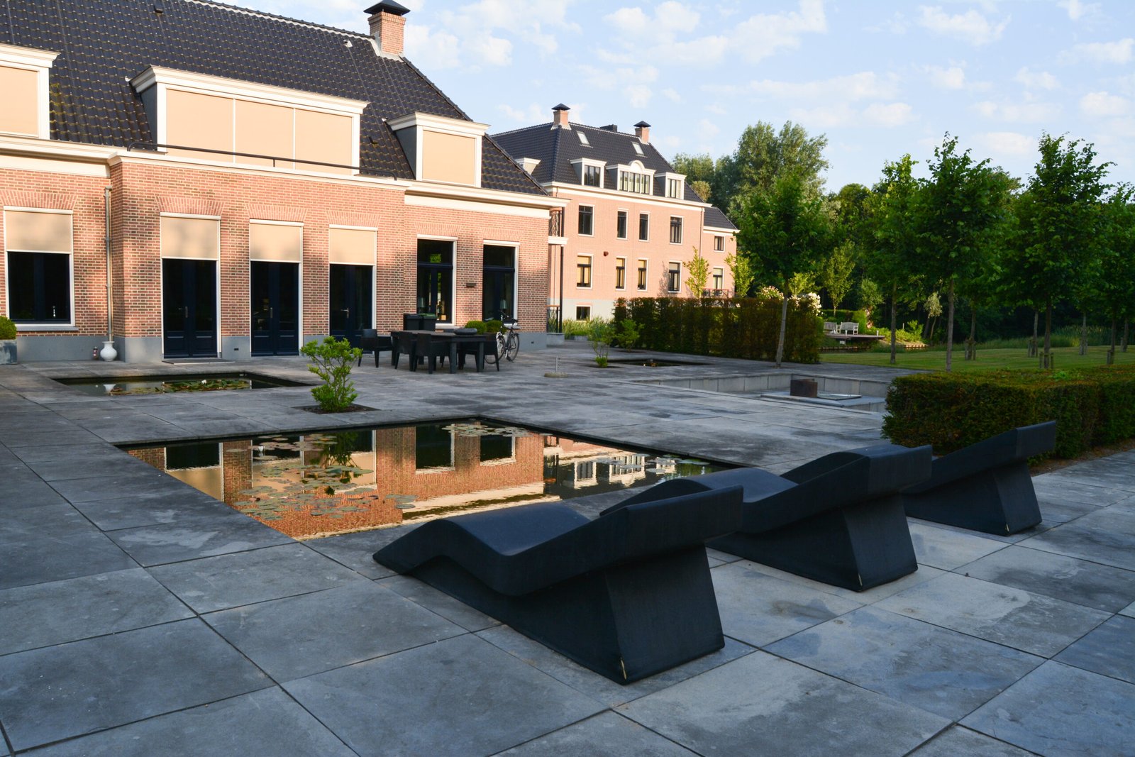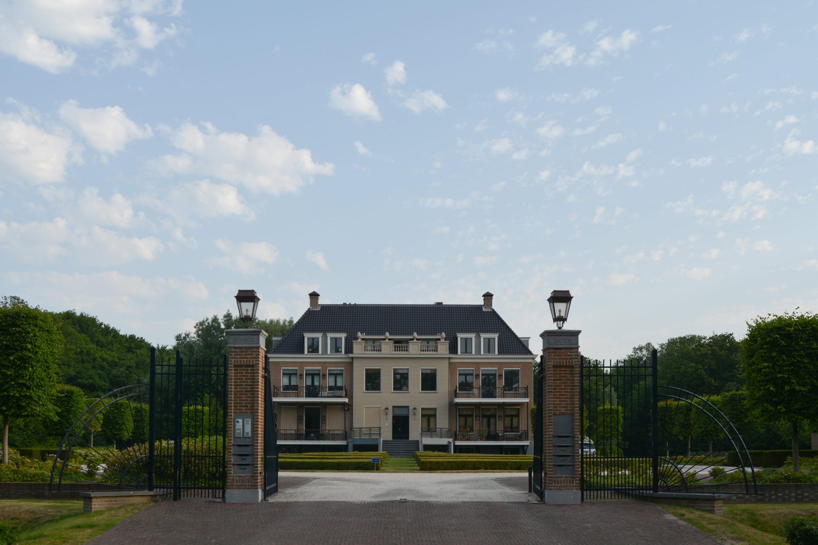Voor Landgoed Hoog Duijn mochten wij de complete buitenruimte aanleggen én verzorgen. Het ontwerp is gemaakt door Bosch & Slabber en vormt een prachtig geheel met de statige architectuur van het landgoed. Rust, symmetrie en hoogwaardige afwerking staan centraal in deze bijzondere tuin.